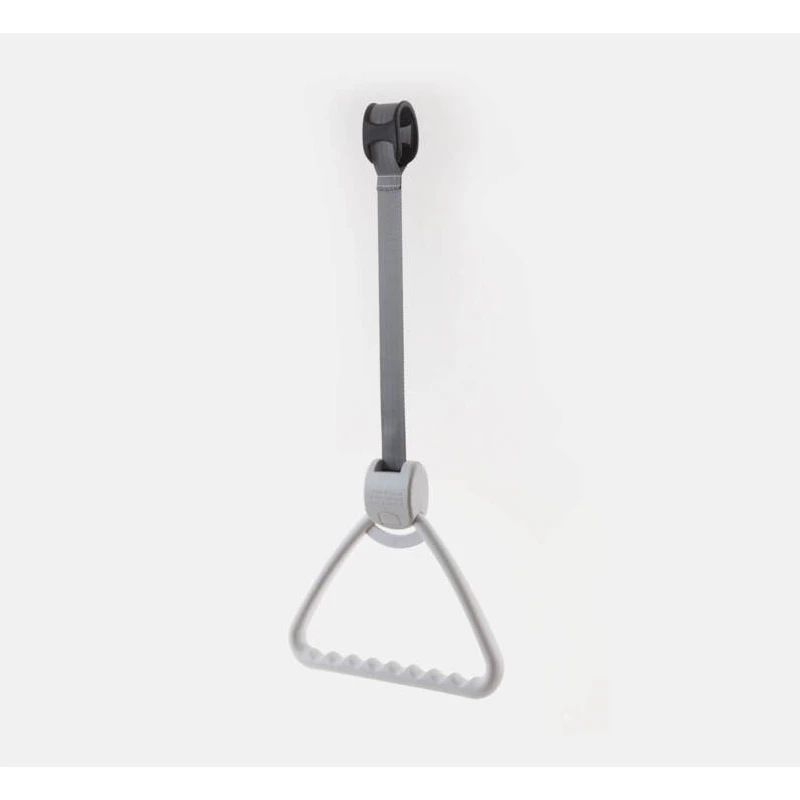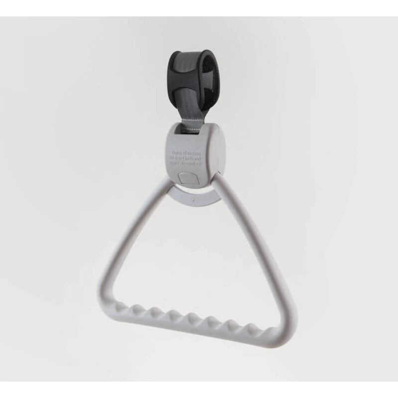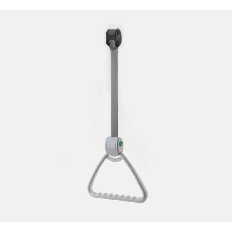 Wyposażony w automatycznie zwijany pasek, który jednym naciśnięciem przycisku pozwala na szybkie schowanie trójkąta, dzięki czemu nie przeszkadza w pielęgnacji pacjenta. Regulowana długość paska sprawia, że uchwyt jest idealny w placówkach o rotacji pacjentów.