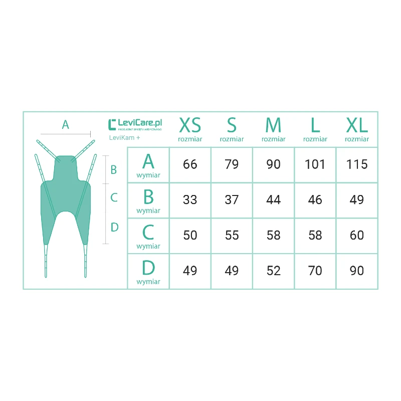 Kamizelka LeviKam Plus współpracuje z podnośnikami dla osób z niepełnosprawnościami, m.in. z podnośnikiem transportowym Levicare Q140. Charakteryzuje się wysoką jakością wykonania i przemyślanym kształtem. Wykonana jest z wytrzymałej, bezpiecznej siatki poliestrowej, która doskonale przepuszcza wodę i szybko schnie. Kamizelka LeviKam Plus umożliwia transport pacjenta w pozycji siedzącej zapewniając podparcie dla pleców i głowy. Pozycję pacjenta można dopasowywać do potrzeb dzięki sześciopunktowemu, regulowanemu zawieszeniu. Wszyty uchwyt manewrowy pozwala na obracanie pacjenta w podwieszeniu.