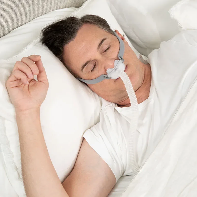 Maska nosowa AirFit P10 to lekka i wyjątkowo cicha maska CPAP, stworzona z myślą o maksymalnym komforcie użytkownika. Dzięki minimalistycznej konstrukcji i elastycznym poduszkom nosowym, maska zapewnia swobodne oddychanie oraz skuteczną terapię przy minimalnym kontakcie z twarzą. Jest łatwa w zakładaniu i zdejmowaniu, a jej kompaktowy design sprawia, że idealnie nadaje się dla osób, które cenią sobie dyskrecję oraz wygodę podczas snu.