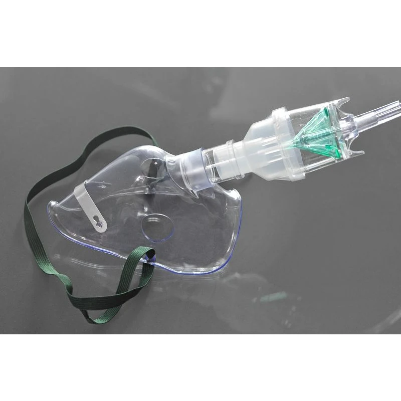 Maska do podawania tlenu z nebulizatorem który umożliwia podawanie leków przez górne drogi oddechowe w postaci aerozolu.