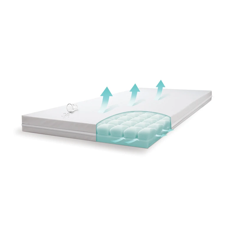 - Zwiększona wentylacja: Struktura gofrowa umożliwia swobodny przepływ powietrza między ciałem pacjenta a powierzchnią materaca, co jest kluczowe dla utrzymania zdrowia skóry. Efektywne odprowadzanie wilgoci i ciepła pomaga zapobiegać nadmiernemu poceniu się oraz podrażnieniom skóry.