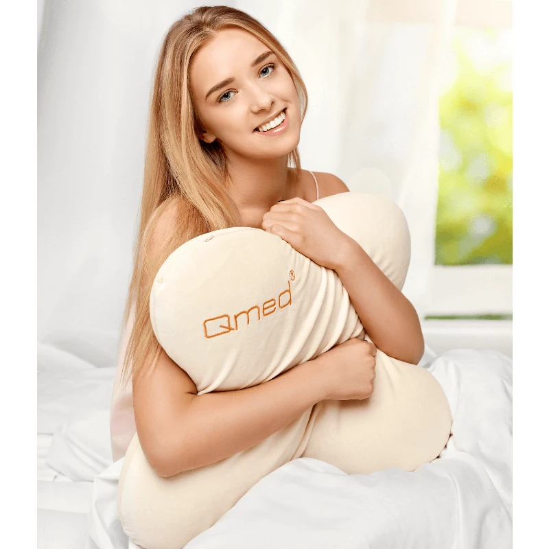 Płaska poduszka profilowana, wykonana z pianki leniwej. Zapewnia optymalne podparcie w czasie snu. Dzięki swej formie, sprzyja dogodnemu ułożeniu, możliwa do przytulenia – objęcia. Ułatwia oddychanie nawet w pozycji na brzuchu. Kształt poduszki pomaga w uniesieniu przedniej części ciała, a tym samym ułożeniu kręgosłupa w pozycji eliminującej napięcie w odcinku szyjnym kręgosłupa i plecach. Poduszki Qmed polecane są przez lekarzy ortopedów, rehabilitantów i fizjoterapeutów w celu zmniejszenia dolegliwości bólowych kręgosłupa, a także zwiększenia komfortu snu pacjentów.
