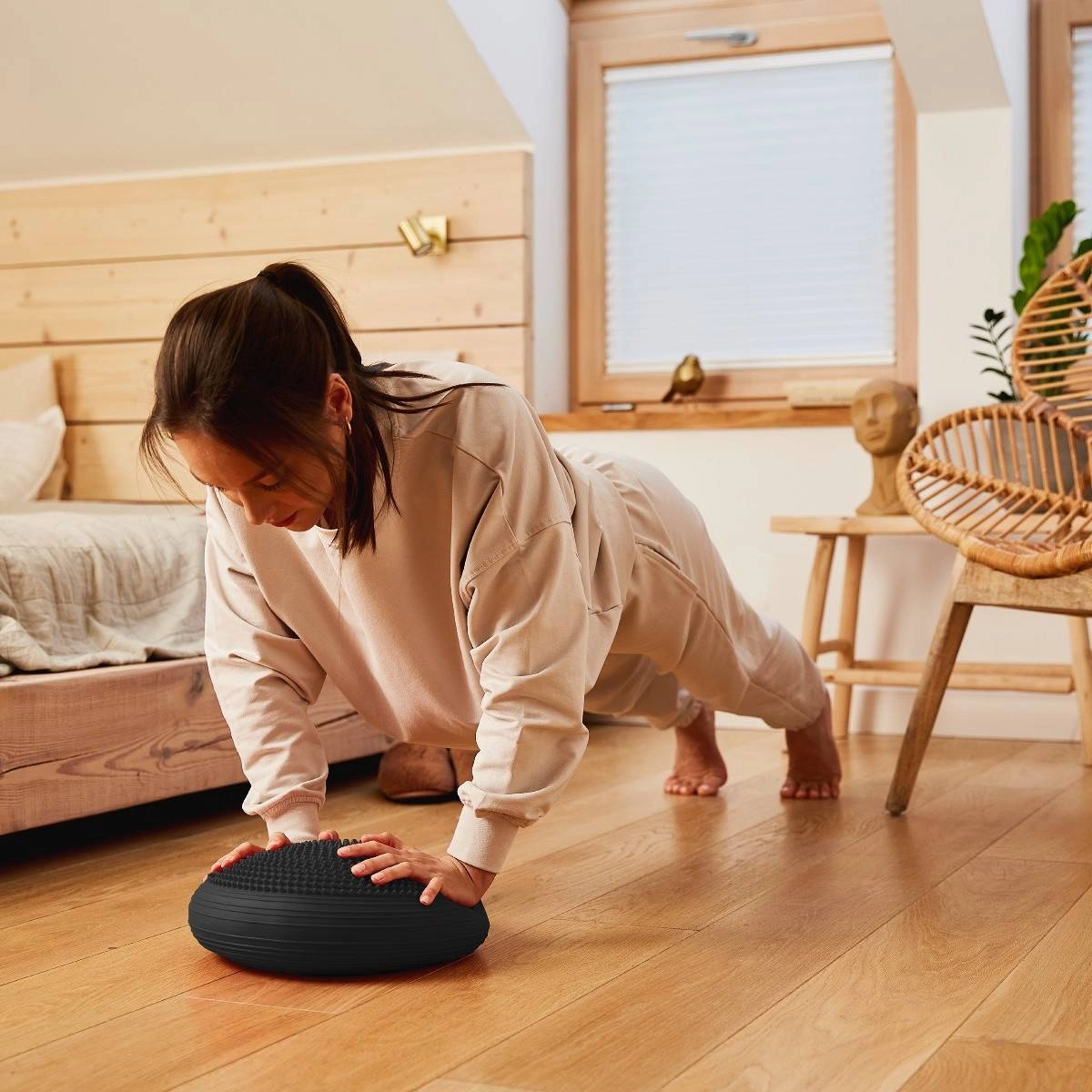Poduszka sensomotoryczna przeznaczona jest do treningu równowagi, stabilizacji i koordynacji ruchowej. Jest powszechnie wykorzystywana w gabinetach fizjoterapeutycznych, na zajęciach jogi oraz pilatesu.