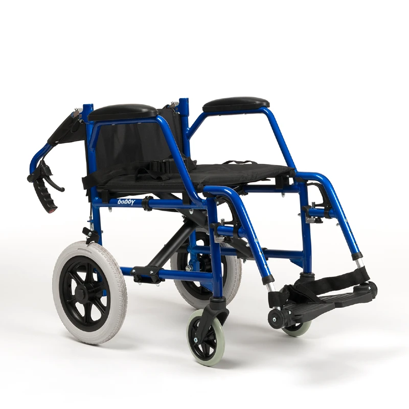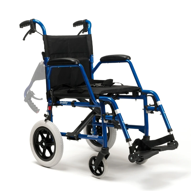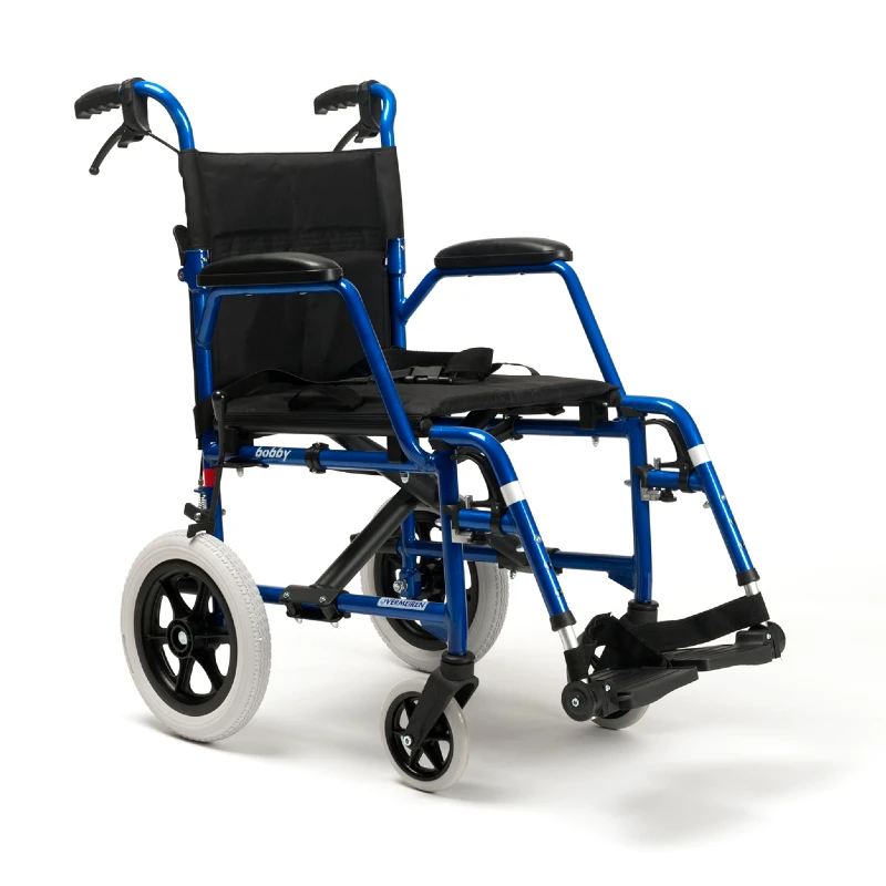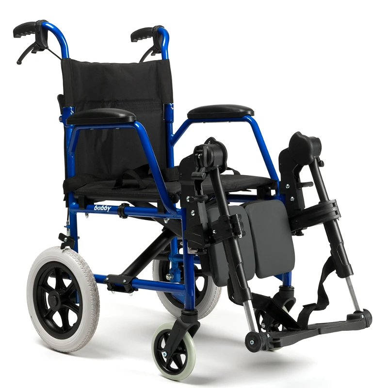 Bobby to wózek kompaktowy, podróżny. Lekki i łatwy w składaniu. Doskonały do używania w szpitalach, na lotnisku, do transportu z punktu A do punktu B. Idealny do przetrzymywania w bardzo małych pomieszczeniach i wymagający minimum konserwacji.